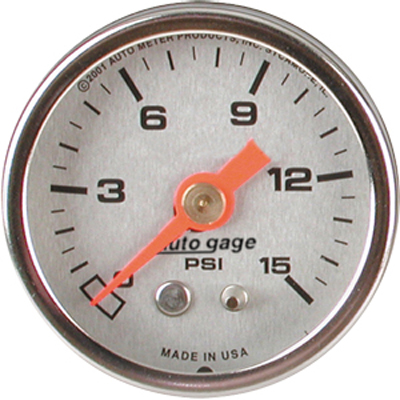 Autometer Autogage Mechanical Fuel Pressure Gauge 1 1/2" (38.1mm)Product OverviewProduct Details: Pressure Gauge, 0-15 Psi Sport-Comp, Silver Buy Together and Save $7.05 |