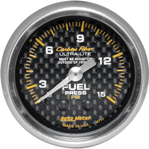 Autometer Carbon Fiber Mechanical Fuel Pressure gauge 2 1/16" (52.4mm)Product OverviewProduct Details: 2" Fuel Press, 0-15 Psi, Mech, Carbon Fiber Buy Together and Save $15.90 |