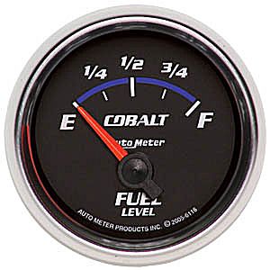2-1/16" Fuel Level, 240e 33 F, Elec, Cobalt Fuel Level Product # 6116 Size: 2 1/16" (52.4mm) Type: Short Sweep Electric Range: 240-33 ohms Notes: Air-Core meter movement. For use with Auto Meter sender model 3262.