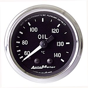 2" Oil Temp, 60-140`C, Auto Meter, Cobra Oil Temperature Product # 201008 Size: 2 1/16" (52.4mm) Type: Mechanical Range: 60-140 deg. C Notes: Includes 6 ft. tubing. Includes 1/2"" NPT adapter/fitting.