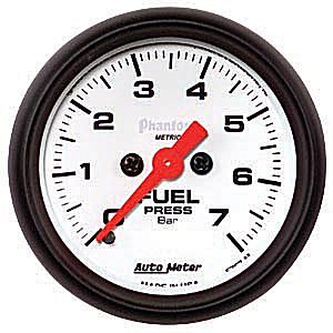 2" Fuel Press, 0-7 Bars, Elec, Phantom Fuel Pressure Product # 5763-M Size: 2 1/16" (52.4mm) Type: Full Sweep Electric Range: 0 - 7 Bar Notes: Full Sweep, Stepper Motor meter movement. Includes 1/8" NPT Sender.