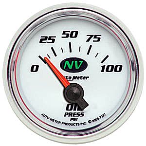2-1/16" Oil Press, 0-100 Psi, Elec, NV Oil Pressure Product # 7327 Size: 2 1/16" (52.4mm) Type: Short Sweep Electric Range: 0-100 psi Notes: Includes 1/8" NPT Sender. Air-Core meter movement. Includes 1/4'' NPT adapter/fittings.