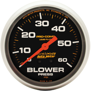 2-5/8" Blower Press, 0- 60 Psi, W/Mem, Mech Blower Pressure Product # 5403 Size: 2 5/8" (66.7mm) Type: Liquid Filled Mechanical Range: 0-60 PSI Notes: Includes 1/4'' NPT adapter/fittings. Requires #4 braided hose kit.