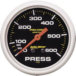 2-5/8" Press Ga, 0-600 Psi, Lfg, Pro-Comp Pressure Product # 5425 Size: 2 5/8" (66.7mm) Type: Liquid Filled Mechanical Range: 0-600 PSI Notes: Requires #4 braided hose kit.