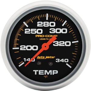 2-5/8" Temp Ga, 140-340` F, 8' Tubing, Mech, Lfg Water Temperature Product # 5435 Size: 2 5/8" (66.7mm) Type: Liquid Filled Mechanical Range: 140 - 340 deg. F Notes: Includes 6 ft. tubing. Includes 1/2"" NPT adapter/fitting.