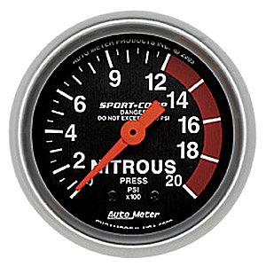 Product Details: 2" Nitrous, 0-2000 Psi, Mech, Sport-Comp Nitrous Pressure Product # 3328 Size: 2 1/16" (52.4mm) Type: Mechanical Range: 0-2000 PSI Notes: Requires #4 braided hose kit.