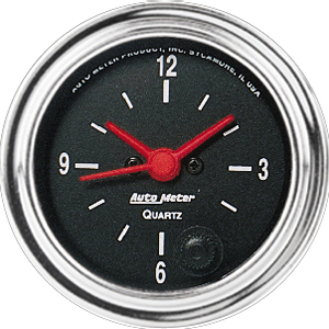 2" Clock, 12 Volt, Elec, Chrome Clock Quartz w/Second Hand Product # 2585 Size: 2 1/16" (52.4mm) Type: Short Sweep Electric Range: