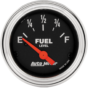 2" Fuel Level, 240 E/33f Amp, Elec Fuel Level Product # 2516 Size: 2 1/16" (52.4mm) Type: Short Sweep Electric Range: 240Ωs Empty / 33Ωs Ful Notes: For use with Auto Meter sender model 3262.