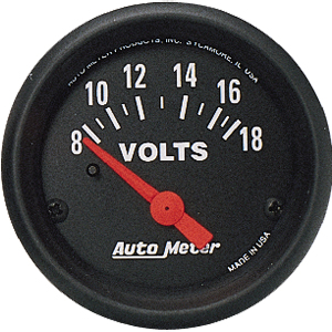 2" Voltmeter, 8-18 Volts Elec, Z-Series Voltmeter Product # 2645 Size: 2 1/16" (52.4mm) Type: Short Sweep Electric Range: 8-18 Volts Notes: Air-Core meter movement.